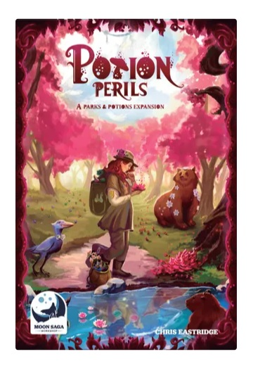 Potion Perils is a strategic expansion that requires the base game, Parks & Potions. In this expansion, players choose specific Time of Day dice to roll, which determine the potions available during those hours. New challenges, such as viral infections and spore outbreaks, create competitive obstacles that players must navigate each round.