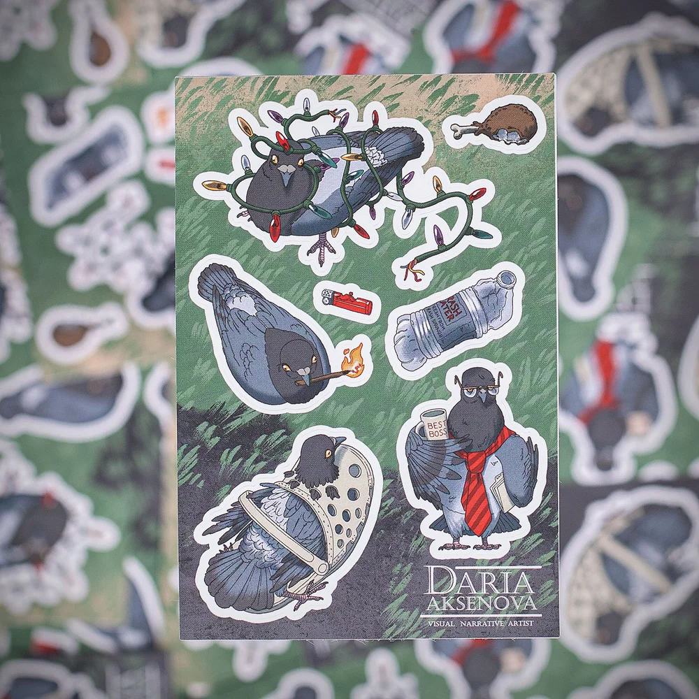 World of Trash: Waterproof Vinyl Sticker Sheet - Pigeons - 'World's Best Boss'