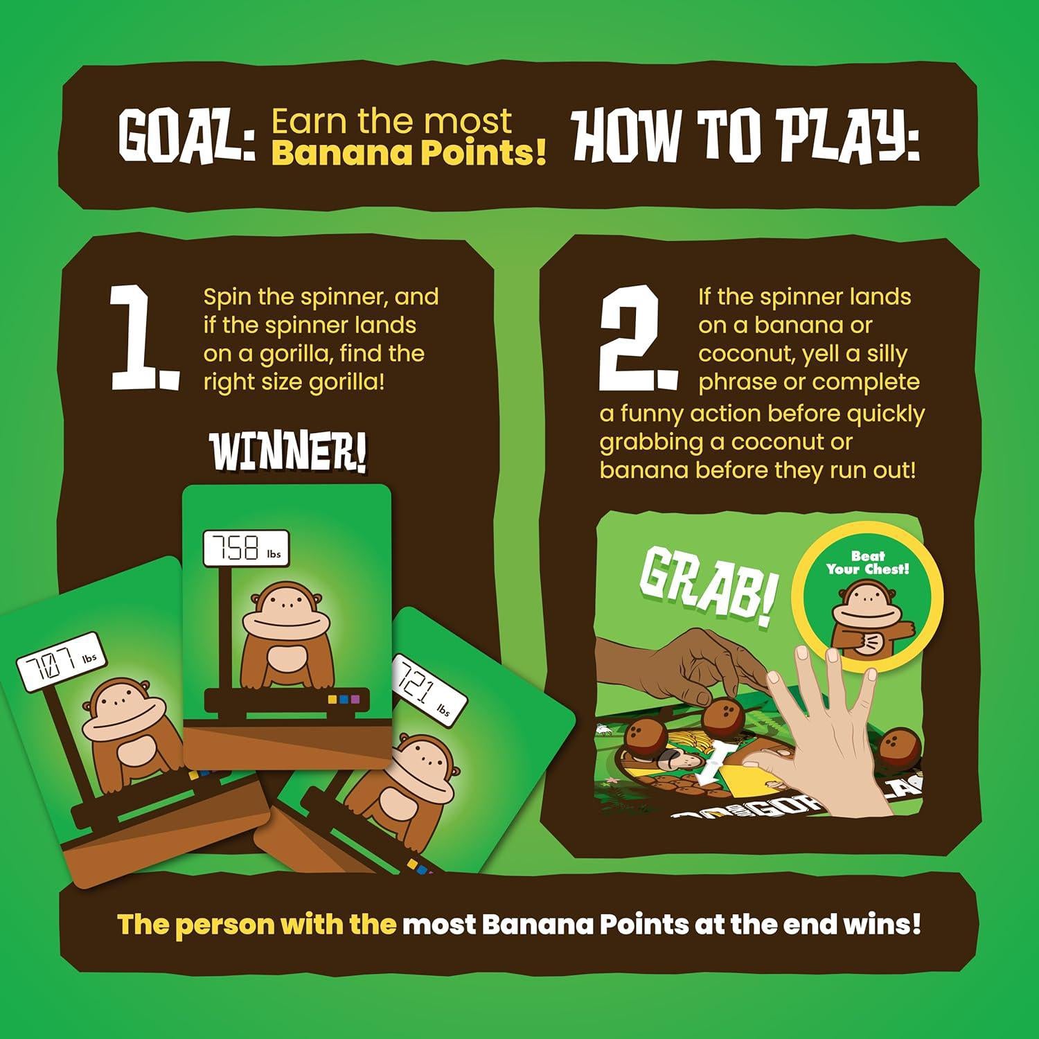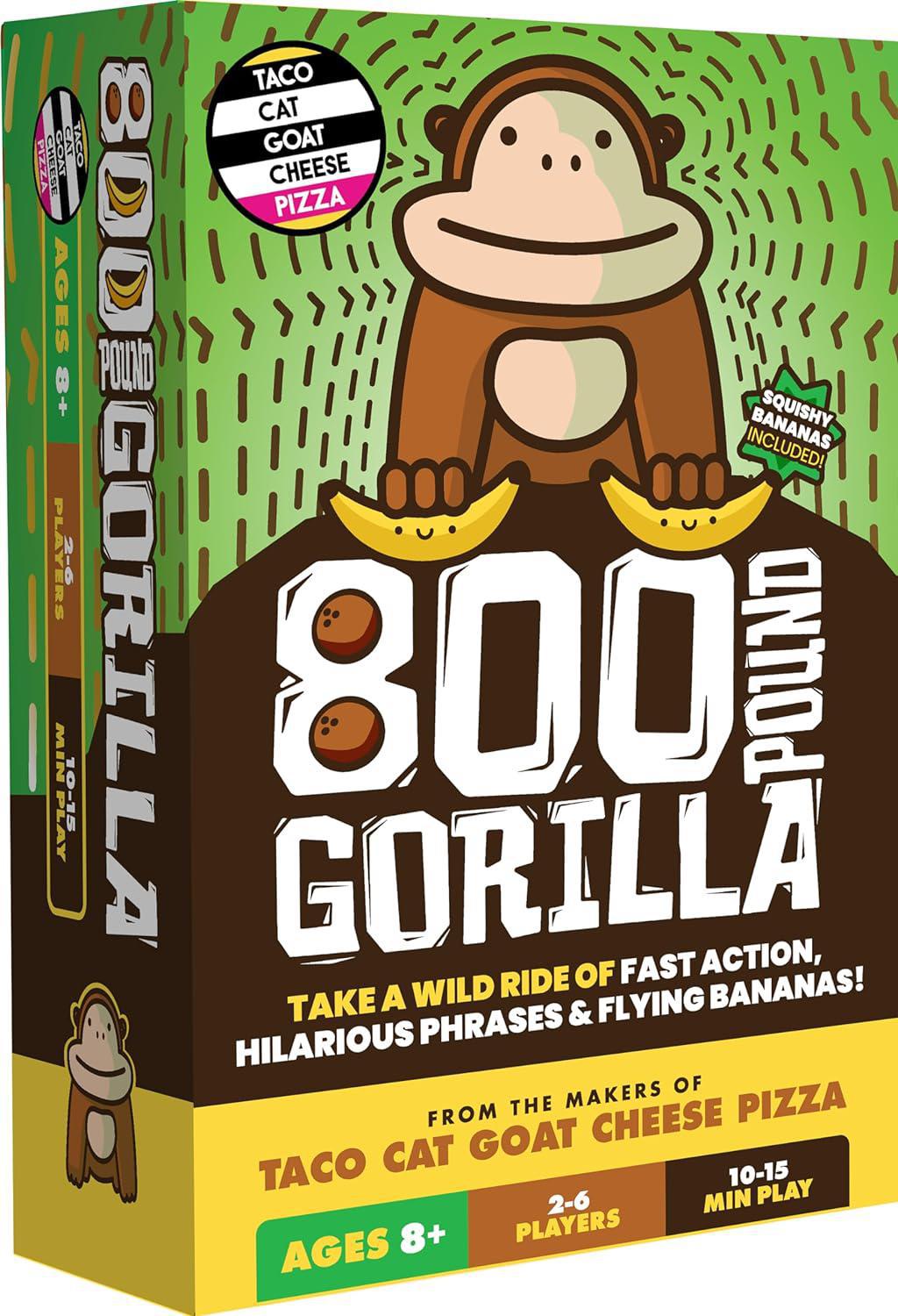 From the makers of Taco Cat Goat Cheese Pizza, 800 Pound Gorilla is a game for 3-6 players. Players will be completing actions and yelling silly phrases, while grabbing coconuts and bananas. If the spinner lands on a gorilla, players must claim the right size gorilla but finding it isn't as easy as it looks! Easy to learn, for all generations, with endless replay.