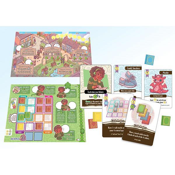 A Place for All My Books is a puzzley book gathering, sorting and organizing strategy game where players arrange stacks of books in different rooms of their apartment as personal projects. When done, they can admire their accomplishments and gain their rewards – not least of which is renewed energy. They can then spend that social battery to leave the house & brave heading out into the village…to pick up more books!