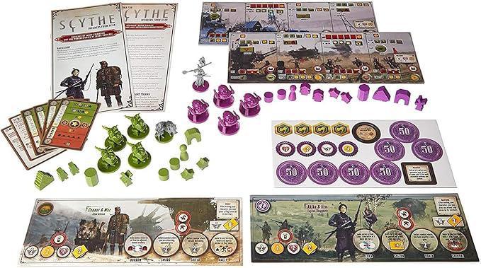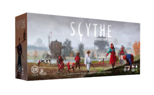 While empires rise and fall in Eastern Europa, the rest of the world takes notice. Two distant factions, Albion and Togawa, send emissaries to scout the land and employ their own distinct styles of conquering. Scythe: Invaders from Afar, an expansion for Scythe, adds two new factions: 10 miniatures, 62 custom wooden tokens, and 2 faction mats. It also includes some new cardboard tokens, two new player mats, six Automa cards, and a custom plastic insert designed to fit into the expansion box or the original Scythe box.
