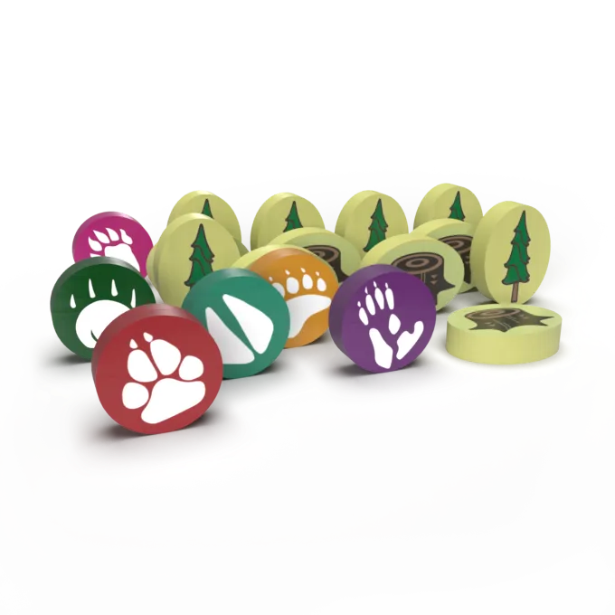 Winter Rabbit features a unique hidden worker placement system. Villagers are drawn randomly from a bag. The active player knows whose villager they have drawn and can choose where to place it, though this information is hidden from other players. Resources are only generated when enough villagers are present. When resources are produced, every player gets one, but those with villagers present gain additional resources.
