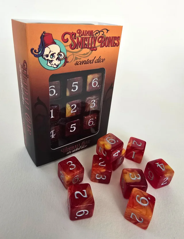 Baron Smelly Bones: Scented Dice - "Fireball Char" - Polyhedral 9-set