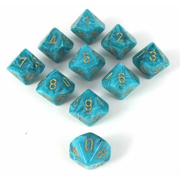 Chessex: Vortex Teal w/ Gold - Dice Set 10D10 - CHX27239