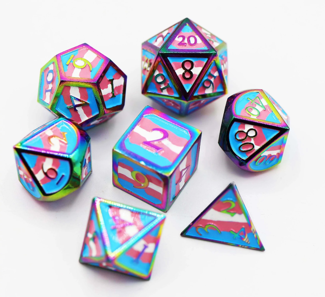 Foam Brain Games: Trans Pride Flag RPG Metal Dice Set