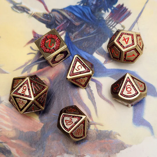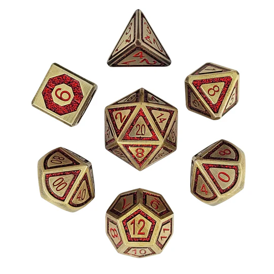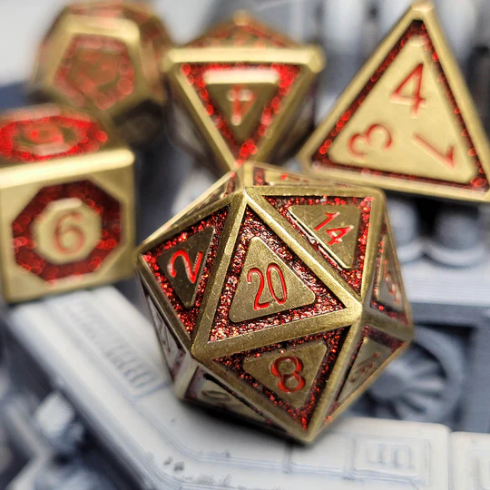 Forged Gaming: Celestial Artifact Antiqued Gold Red Glitter - Metal RPG Dice Set