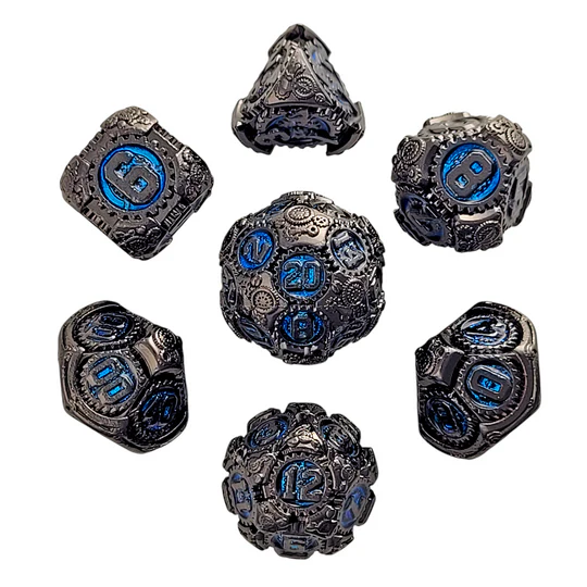Forged Gaming: Chronomica Mechanicum Gunmetal Blue - Metal RPG Dice Set