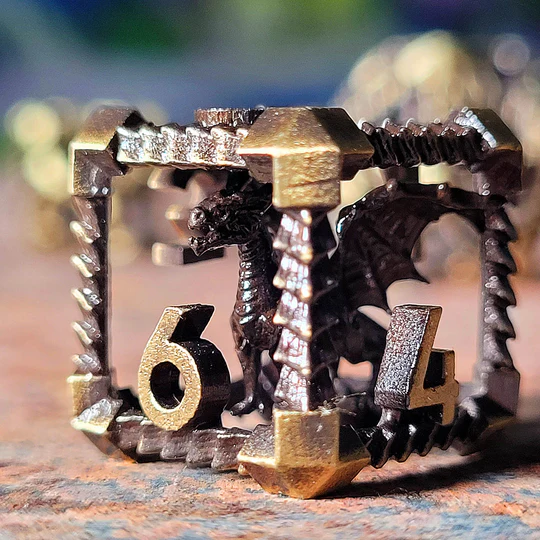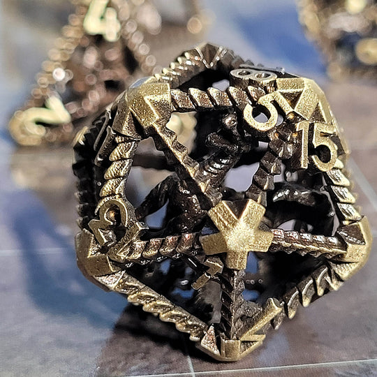 Forged Gaming: Dragon's Immure Antique Gold - Hollow Metal RPG Dice