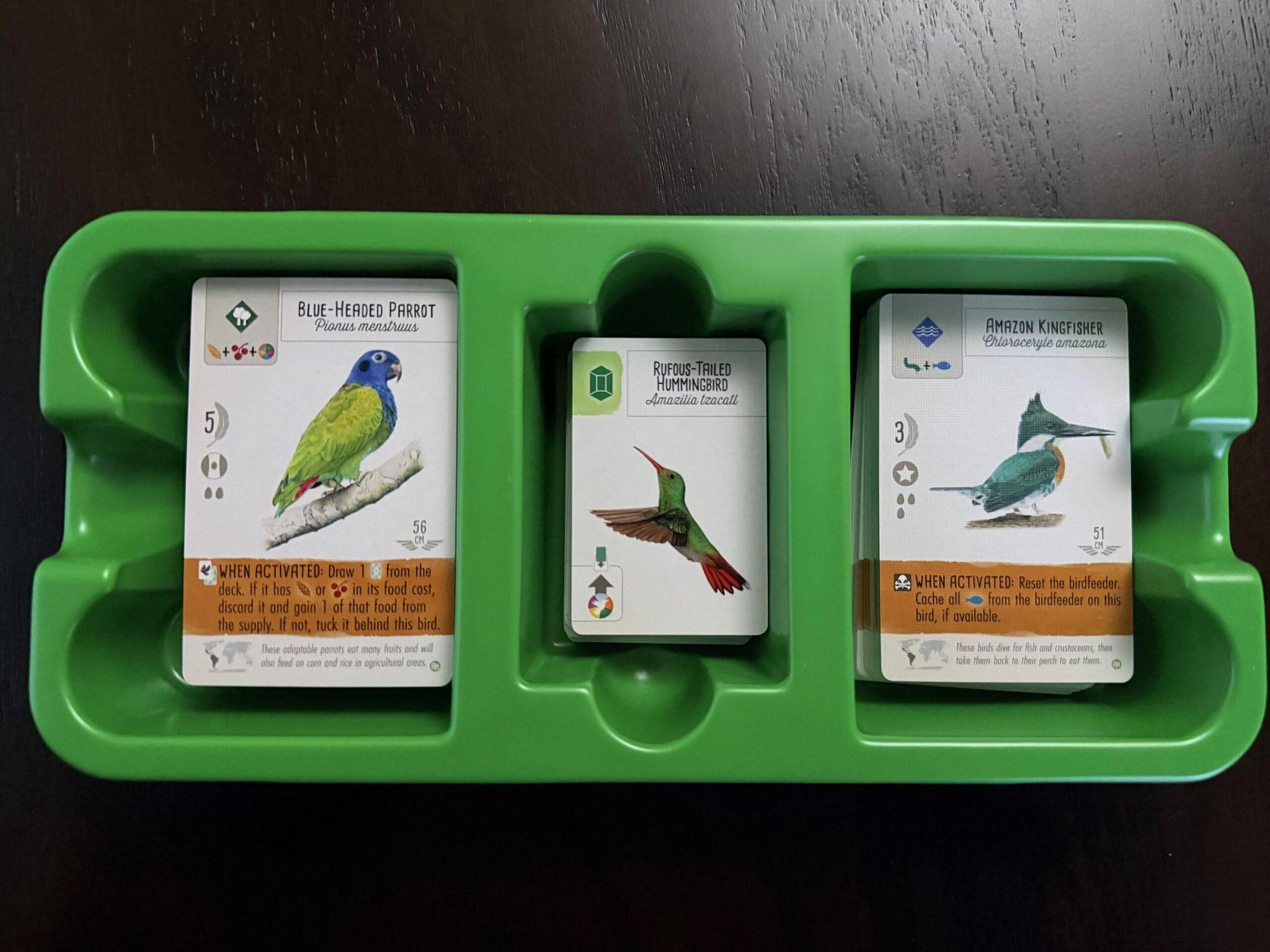 This expansion includes a card tray designed for both 57x87mm cards and the smaller 44x67mm hummingbird cards.