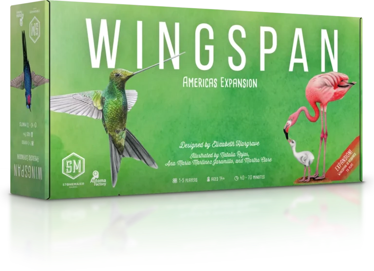 This fourth Wingspan expansion explores the birds of Mexico, Central America, South America, and the Caribbean. This incredibly biodiverse and abundant region is home to more than 3,000 bird species, including the birds with the smallest and largest wingspans in the world (the Bee Hummingbird and Snowy Albatross, respectively).