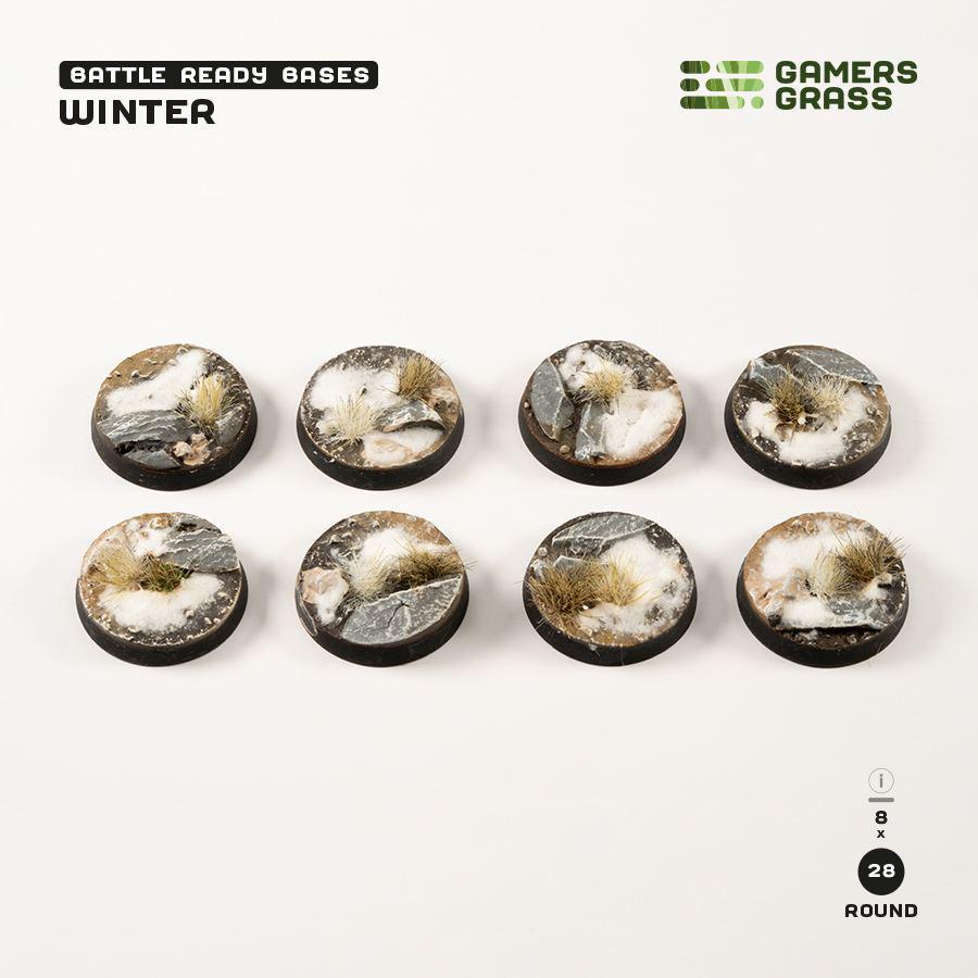 Gamers Grass: Battle Ready Bases - Winter - Round 28mm (x8)