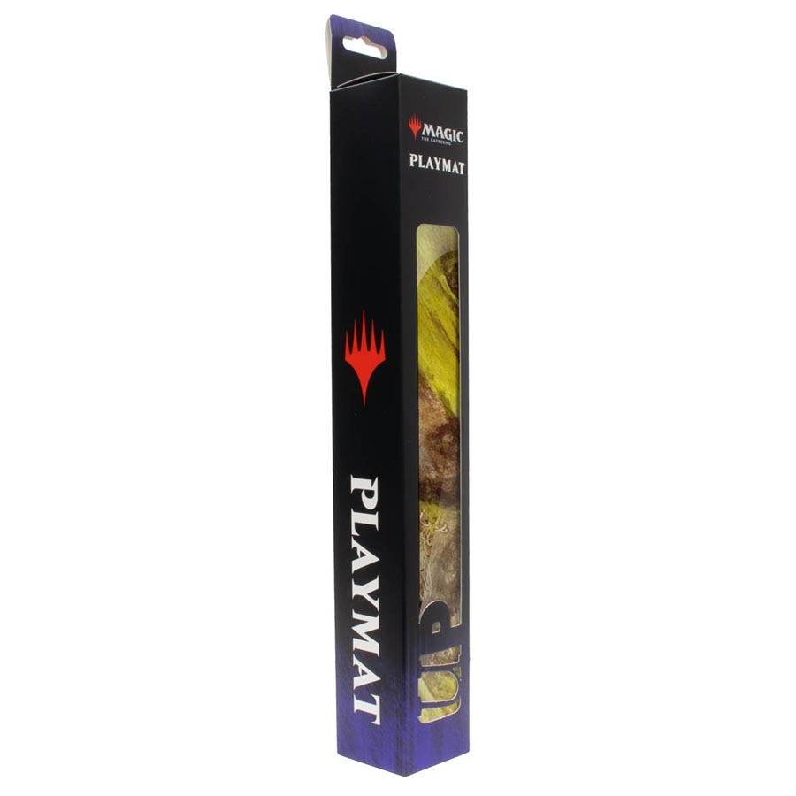 Holofoil Playmats featuring popular Magic: The Gathering artwork printed on a shimmering material with stitched edges. Made with a soft fabric top to reduce damage to cards during play and a non-slip rubber backing to keep the playmat from shifting during use, playmats enhance the gameplay experience. With dimensions of approximately 24 in. x 13.5 in., a playmat also makes an excellent oversize mousepad for home or office.