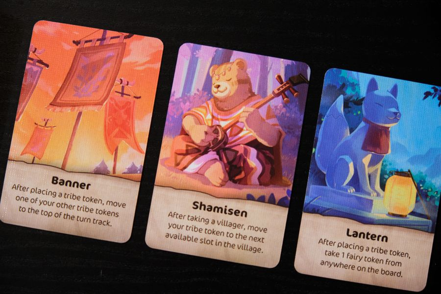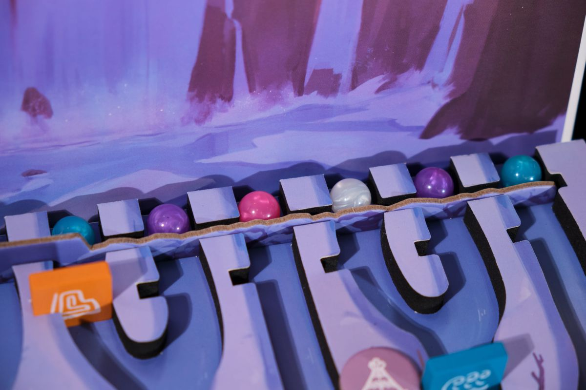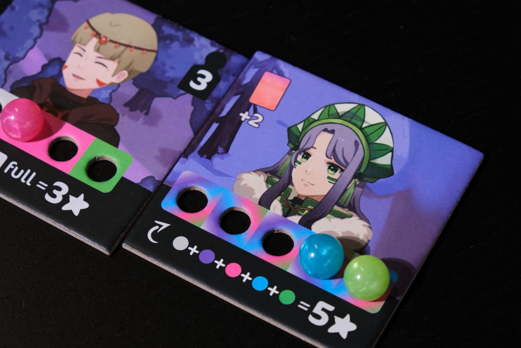 In 12 Rivers, players lead one of four tribes and take turns sending warriors to climb the mountain. The warriors camp near the river to collect Nature's bounties and bring these resources to villagers in need. Warriors can collect more valuable bounties if they move toward the origin of the river, but more camp tools have to be paid as well. After five rounds, the bounties to the villagers will be scored for players based on the rarity.