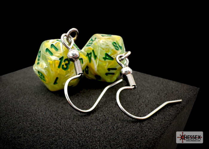 Chessex: Hook Earrings - Marble Green Mini-Poly d20 Pair - CHX54203