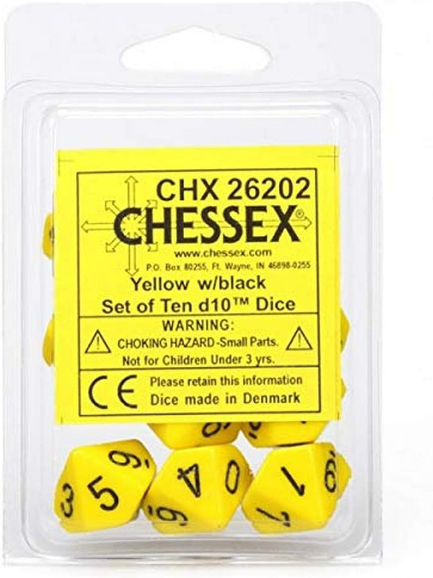 Chessex: Opaque Yellow w/ Black Set of d10s (10) (CHX26202)