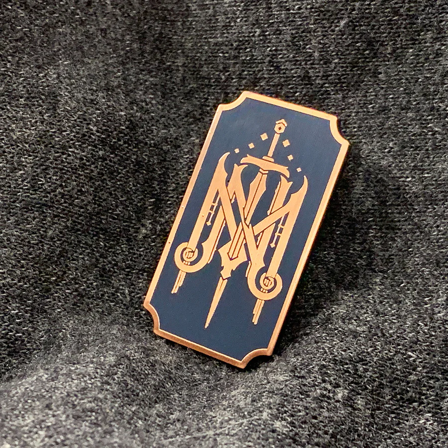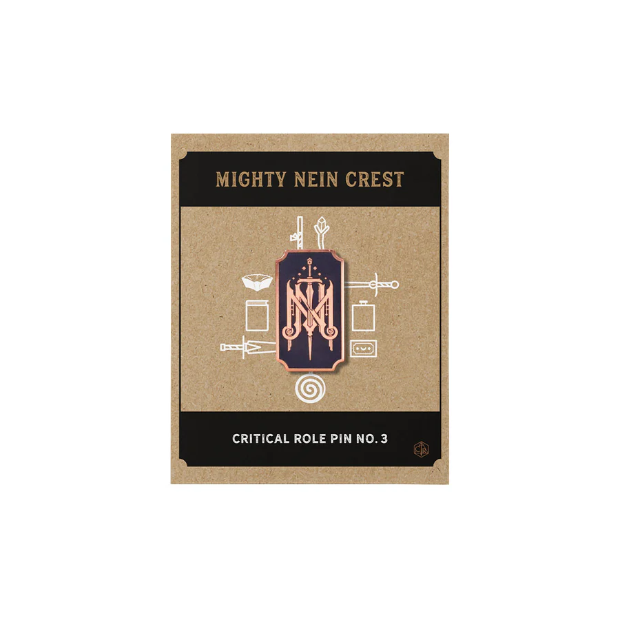Our Mighty Nein crest pin has been redesigned with this new variant as a part of our Critical Role Pin series. Our Mighty Nein monogram was designed by Critter Crystal Sharp (@Malcassairo).