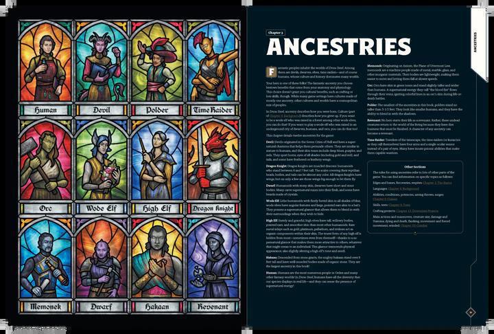 • Classic fantasy ancestries reimagined and brand NEW ancestries, each with several options to choose from. Even humans! Why should humans be boring!?