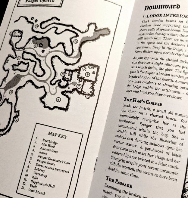 Laden with doom and dread, this fifty-six page narrative adventure deals with themes of investigation and survival in a hostile and unforgiving environment. Included within is everything required to run the adventure across one or two sessions.