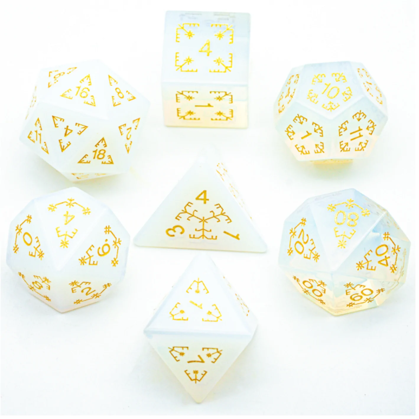 Foam Brain Games: Opalite with Gold Flourish Engraving - RPG Gemstone Dice Set