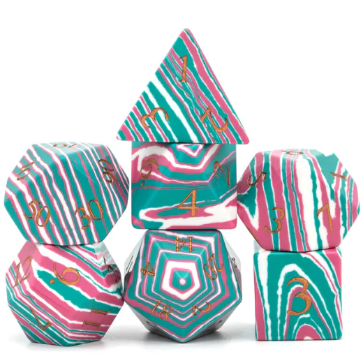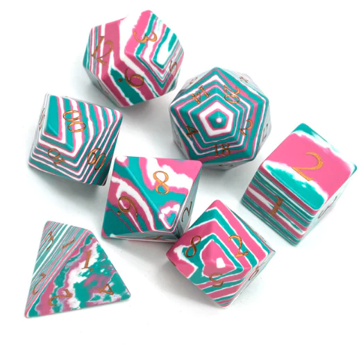 Foam Brain Games: Textured Turquoise Pink & Teal with Gold Engraving - RPG Gemstone Dice Set