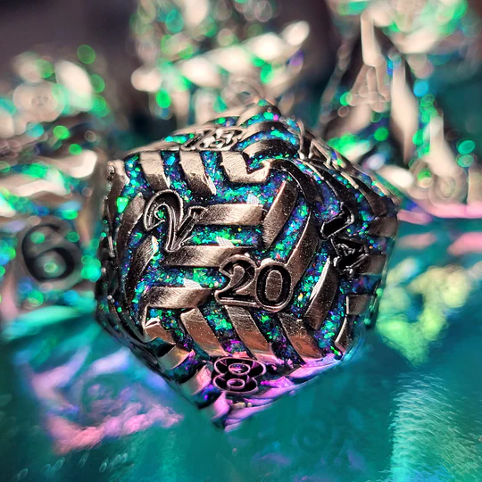 Forged Gaming: Cosmic Energy Nickel Green-Purple - Metal RPG Dice Set