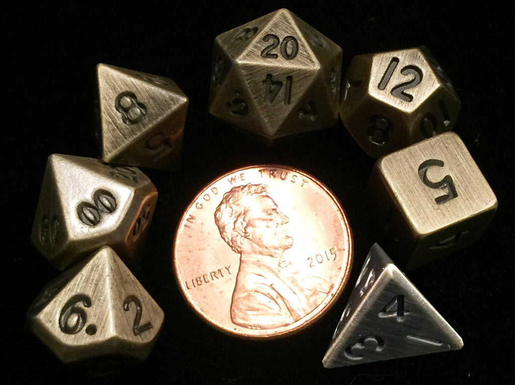 Metallic Dice Games: Antique Gold 10mm - Mini Polyhedral Dice Set (7)