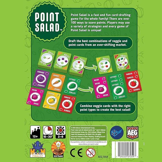 Point Salad is a fast and fun card drafting game for the whole family! There are over 100 ways to score points. Players may use a variety of strategies and evry game of Point Salad is unique!