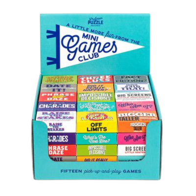 Designed with our best-selling matchbox puzzles in mind, these pocket-sized games are sure to be a big hit this season! The 15 different pick-up-and-play games include plenty of well-known classics – such as Fact or Fiction?, Charades and What's the Next Line? – mixed up with some great new ideas. All are immediate-play items with little or no instruction needed.