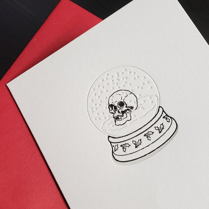 Skylab Letterpress: Skull Snow Globe Greeting Card - A2 Sized Letterpressed Blank Greeting Card