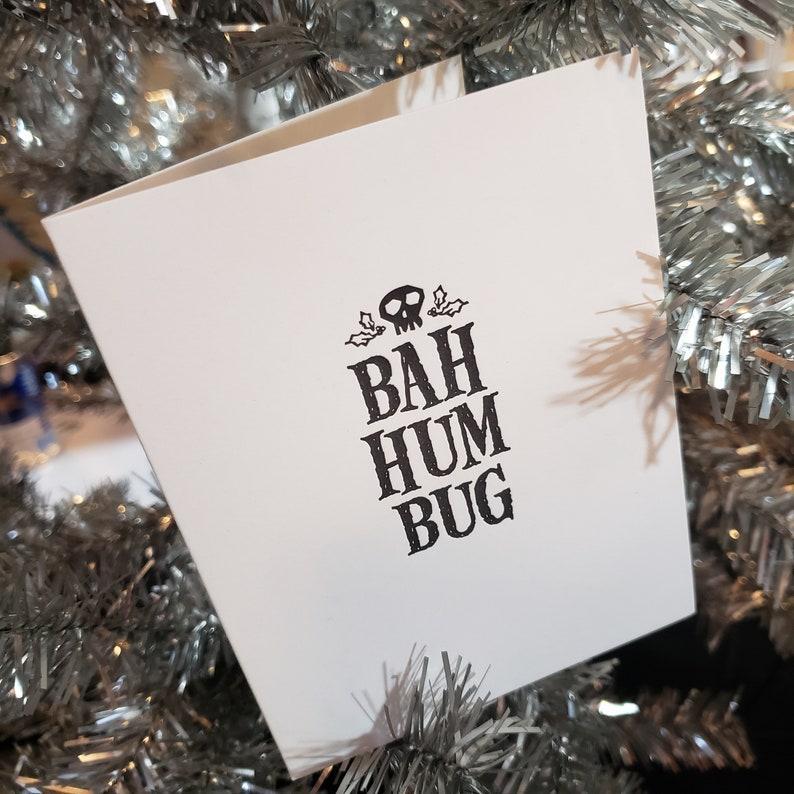 Skylab Letterpress: Twisted Xmas Cards Holiday Card - Bah Humbug - A2 Sized Letterpressed Blank Greeting Card