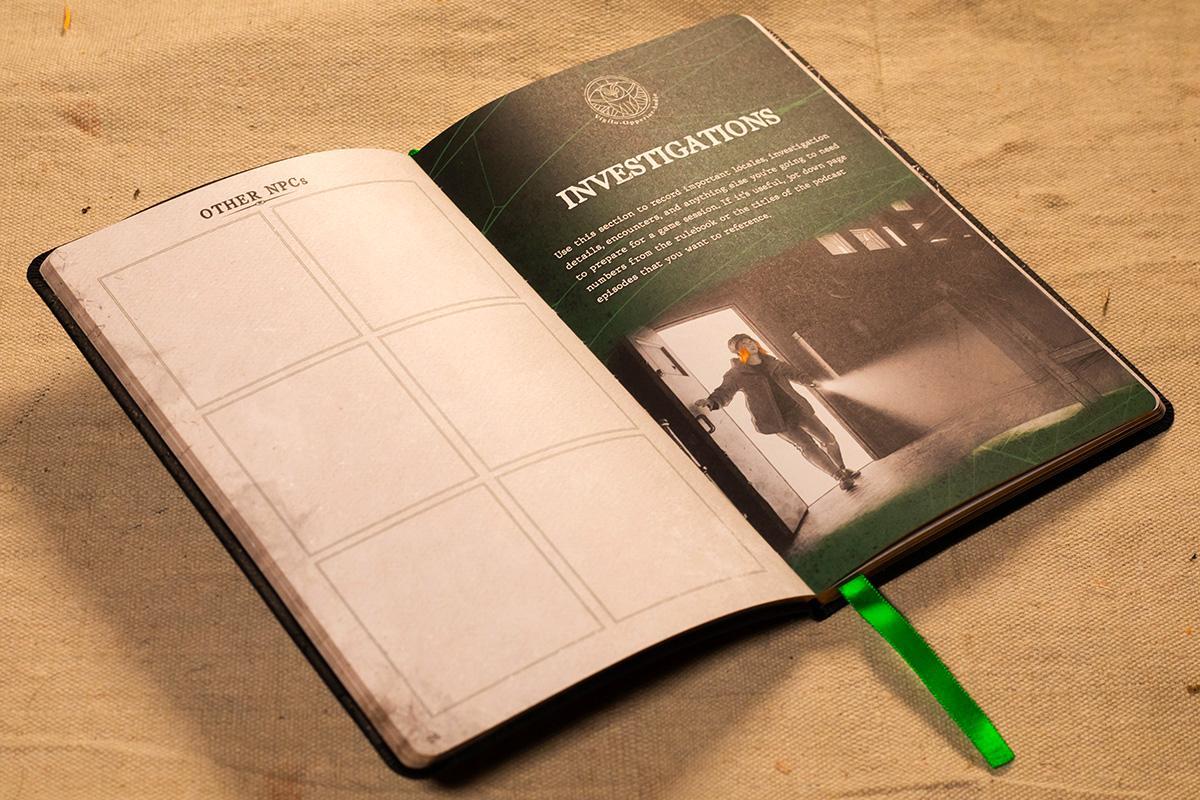 Outside, a soft faux-leather cover is foil-stamped with the logo of The Magnus Institute, and gilt-edges pages give the journal all the gravitas your campaign deserves. It’s rounded out with a bound-in satin bookmark that—like the entire journal—is both beautiful and functional. The whole product has a look and feel that’s as singular as the game—and your campaign.